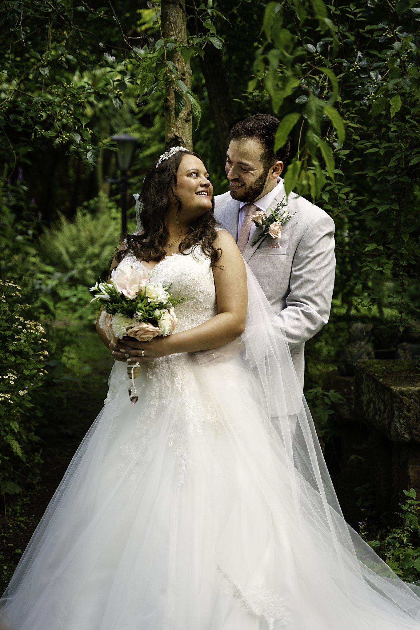 Danni and Ste’s wedding took place on a lovely August day at the Hundred House Hotel in Norton, Shropshire; a venue close to my heart as this is where my husband and I were married! After committing themselves to each other in a civil ceremony in the fairy-light festooned 17th century Tithe Barn, Danni and Ste made the most of the venue’s unique and beautiful gardens for their group photos and couples portraits.