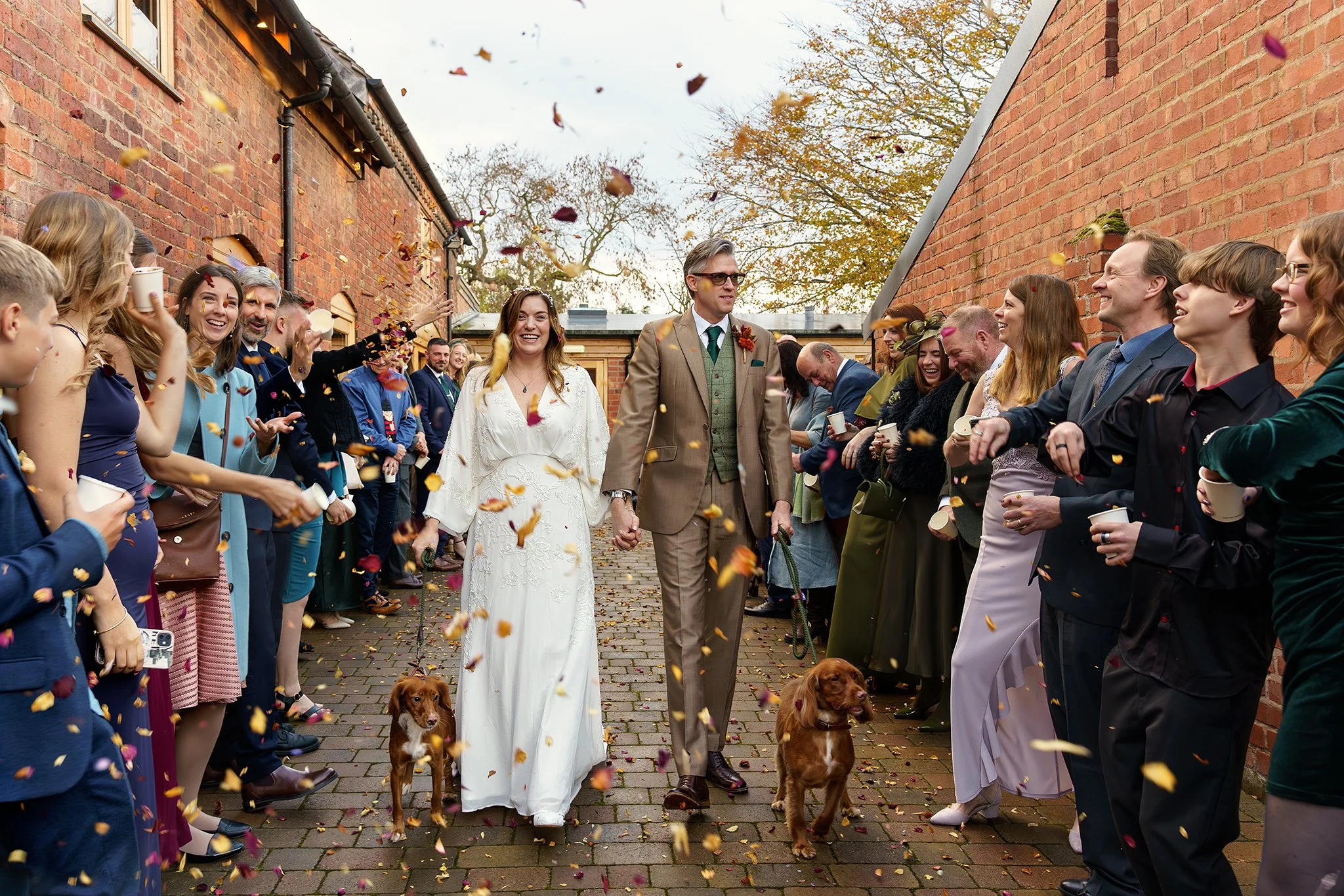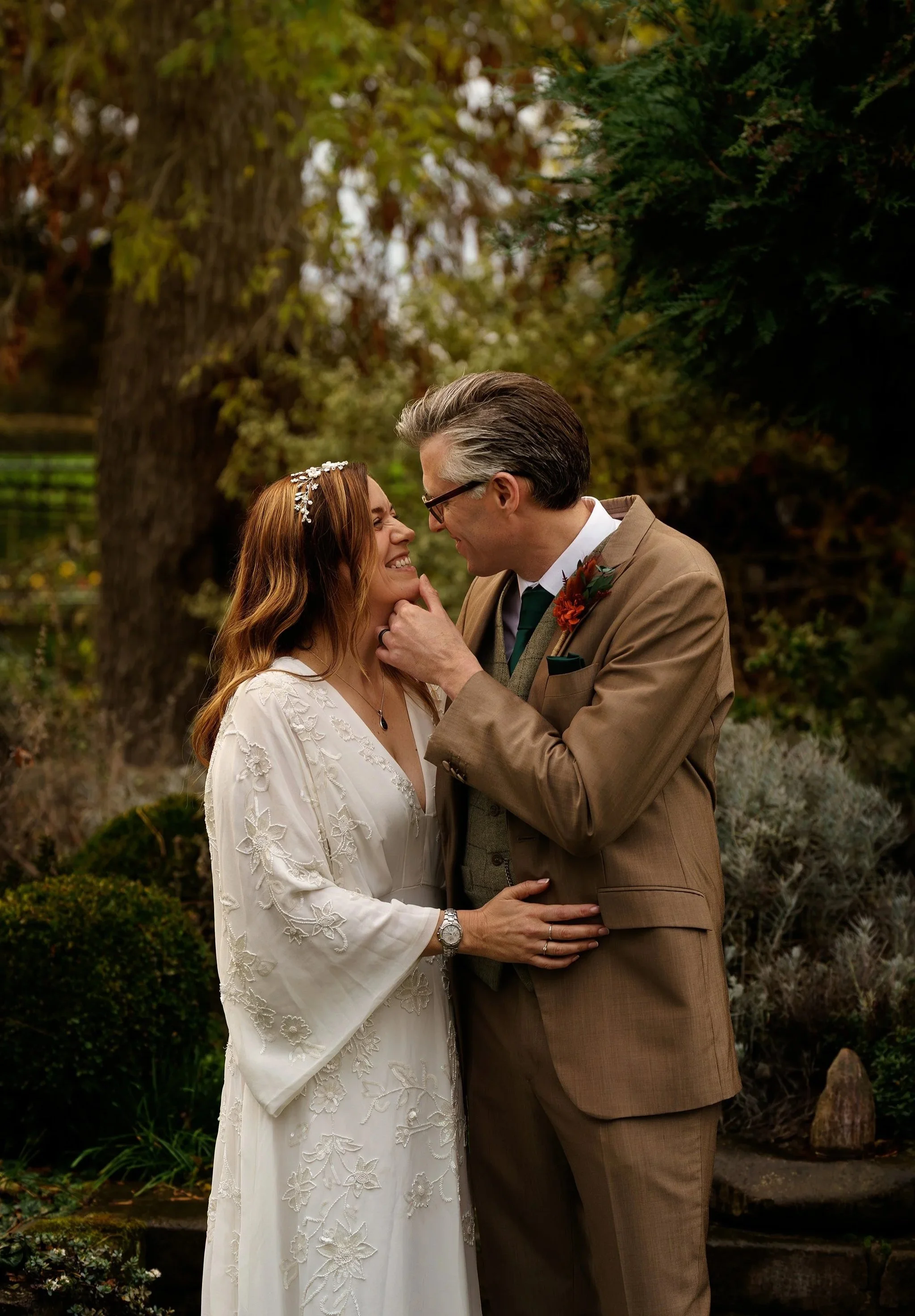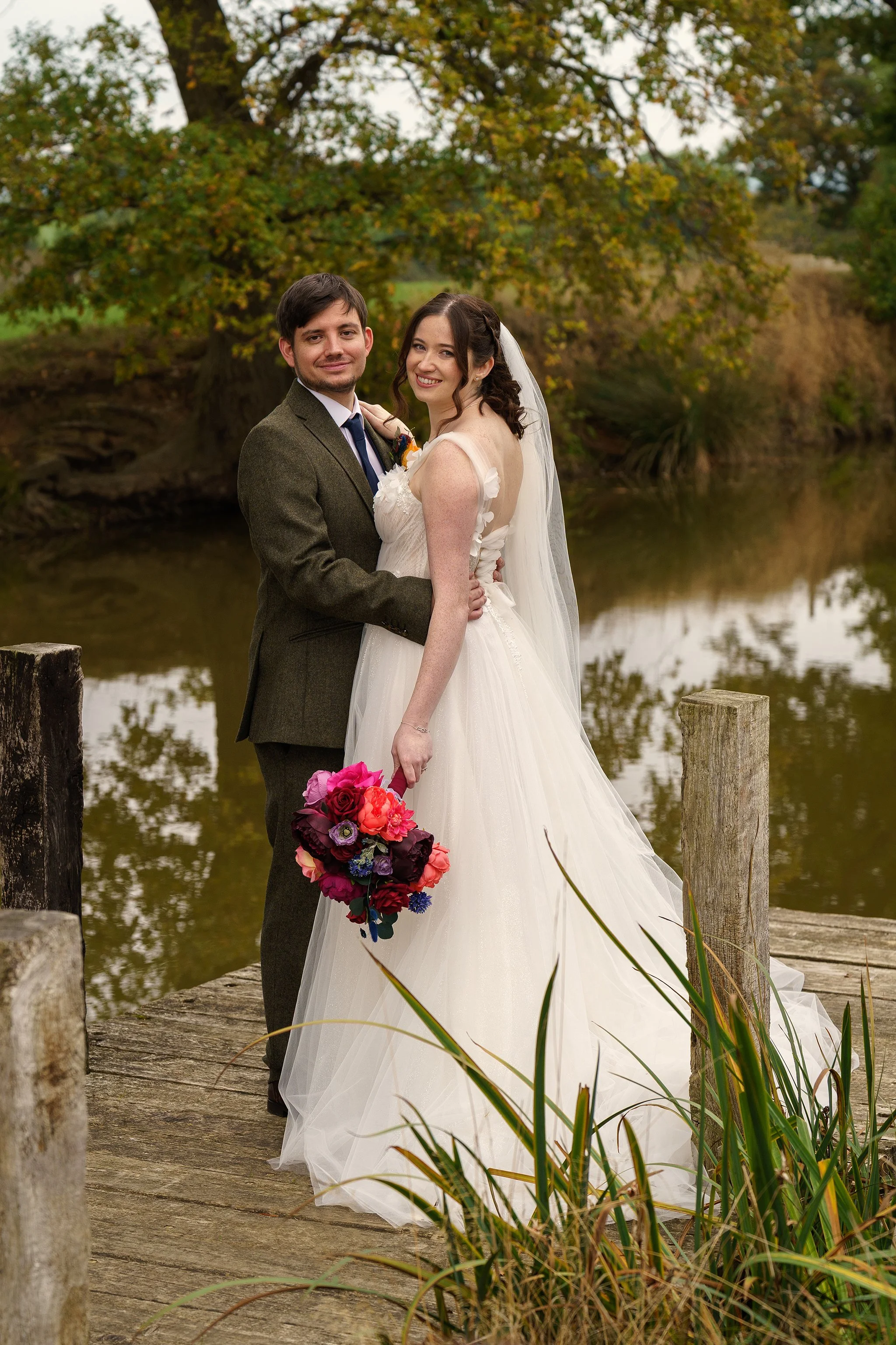 As you stroll through the farmyard, you may encounter chickens, peacocks, or guineafowl, and the Moat Hall cats are always popping by for a friendly hello. Sheep and cows are often seen grazing in the nearby fields, providing fantastic views across the countryside. Couples are also invited to use the farmhouse’s beautifully maintained garden for photographs among the vibrant flower beds. The colourful dahlias are a favourite spot of mine for couples’ portraits, along with the wooden jetty by the lake.
