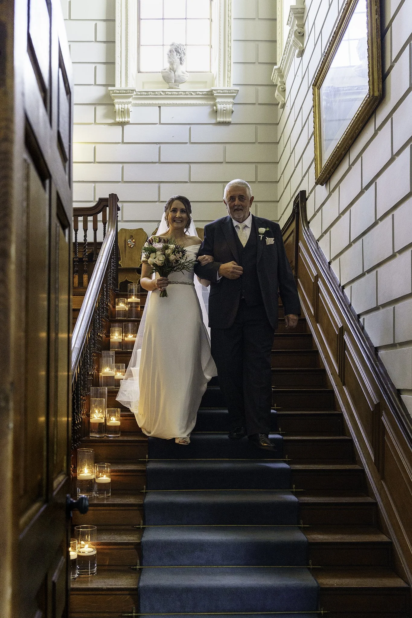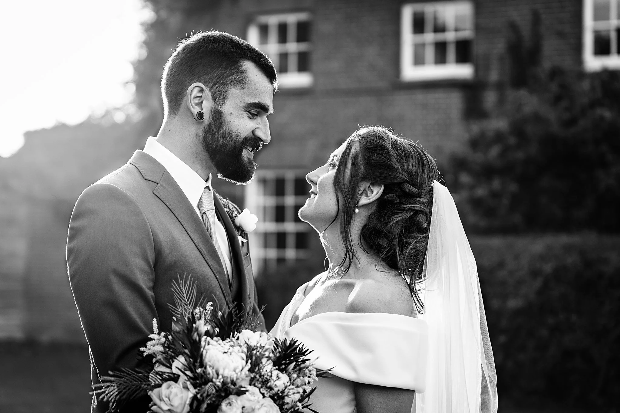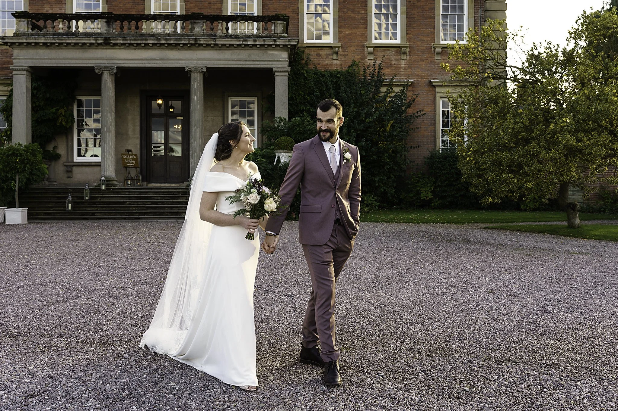 Laura and Reiss’s late October wedding was held at the beautiful Davenport House, near Worfield in Shropshire. This was my second visit to Davenport this year and the house provides a great venue for a fantastic day! Laura and Reiss chose to marry in a civil ceremony in the elegant Great Hall, with Laura making her entrance via the epic staircase, escorted by her father. After confetti and group photos on the house’s steps, Laura and Reiss made the most of the lovely grounds and the golden October light for their couple portraits, in addition to returning indoors for some stunning candle-lit shots of Laura on the staircase to show off her beautiful dress and veil. Later in the afternoon we were blessed with a beautiful autumnal sunset, and managed to dash out and squeeze in a few photos in between courses of the wedding breakfast!