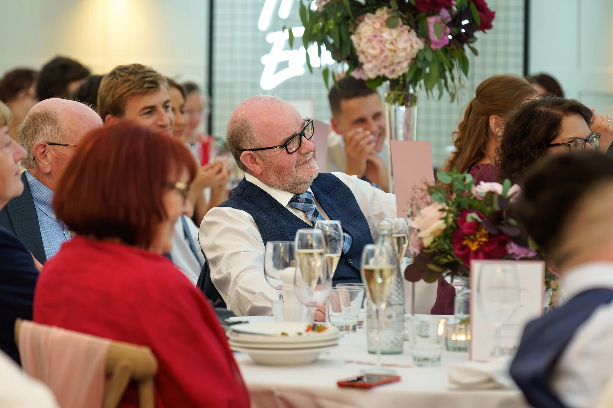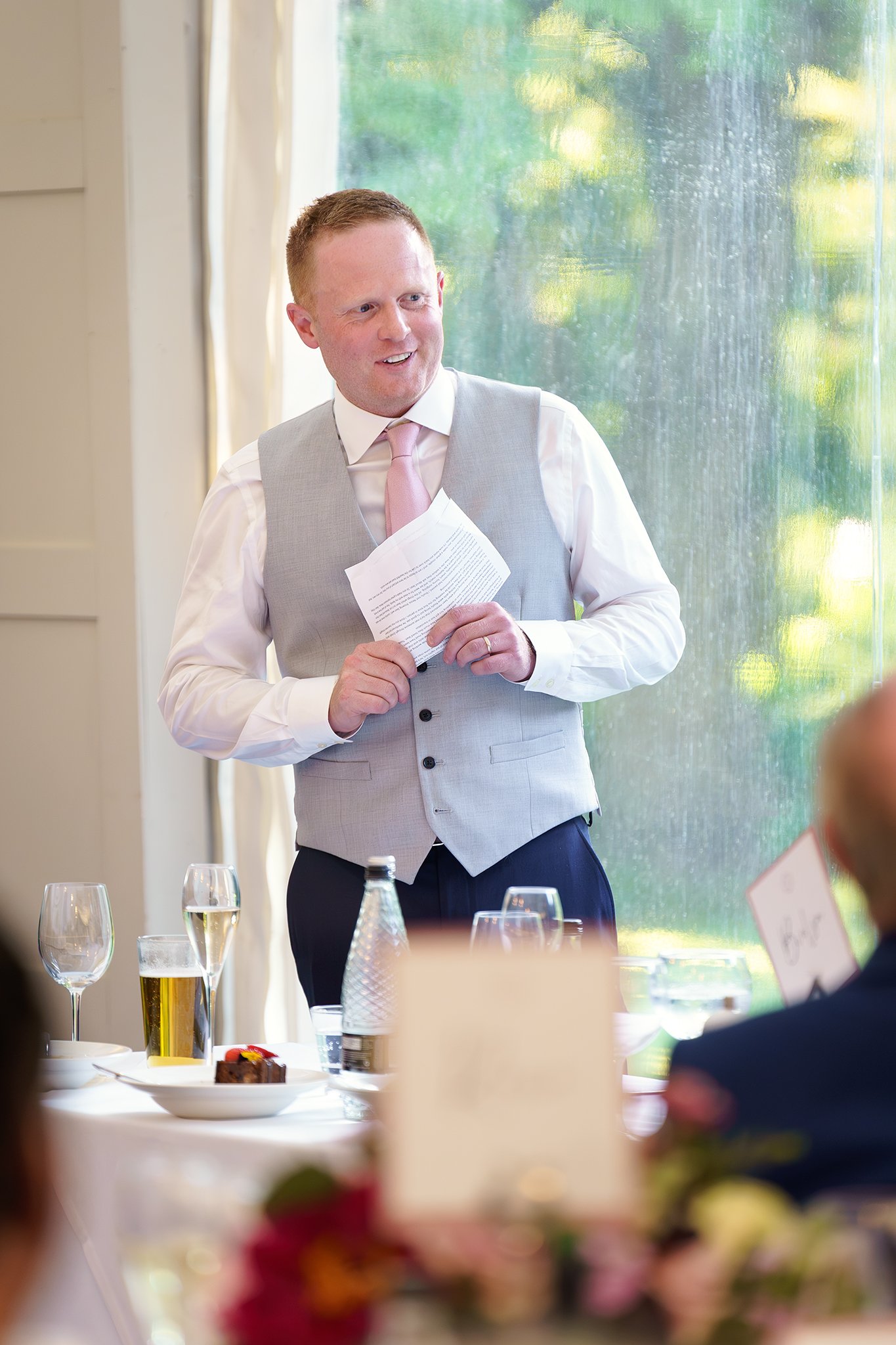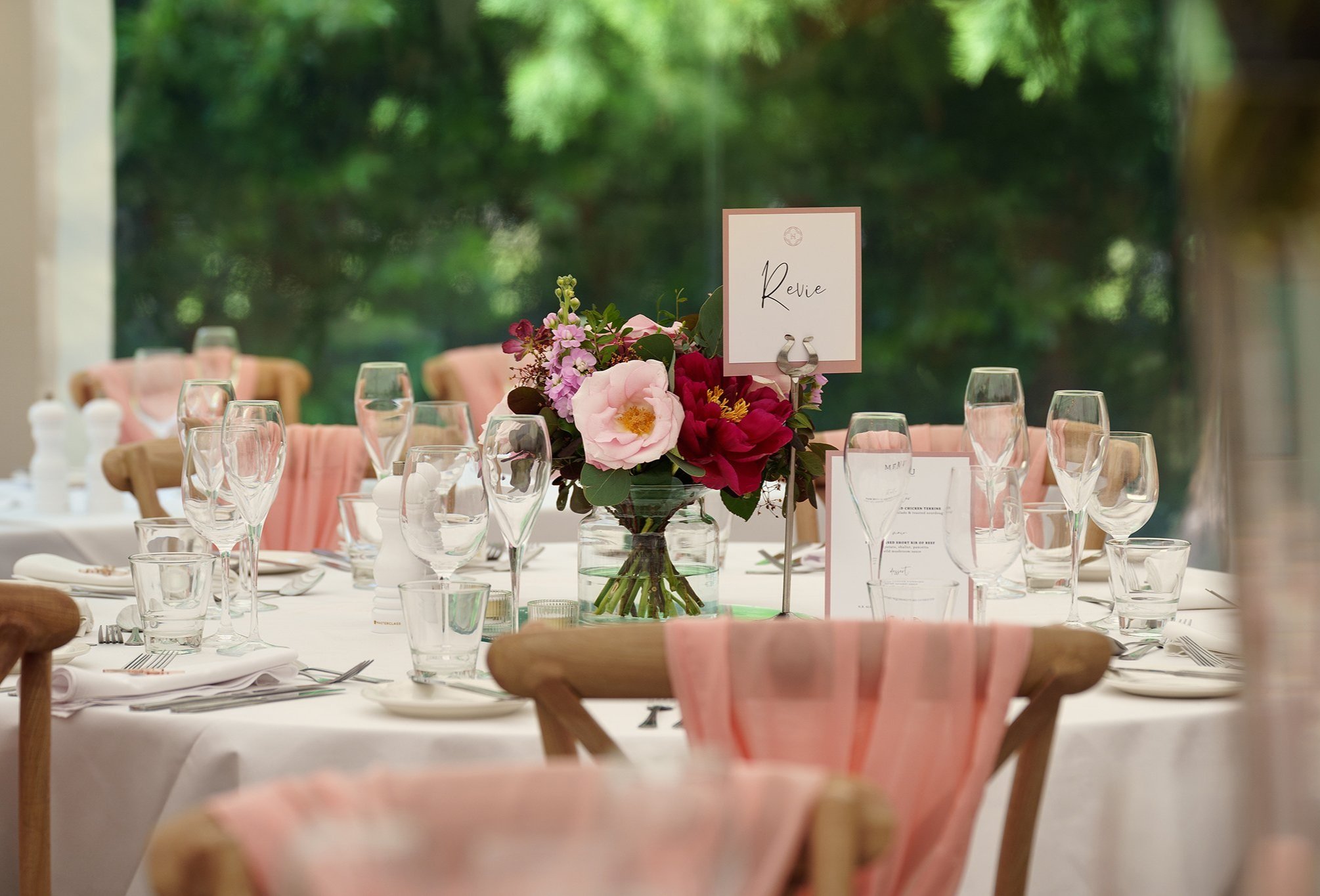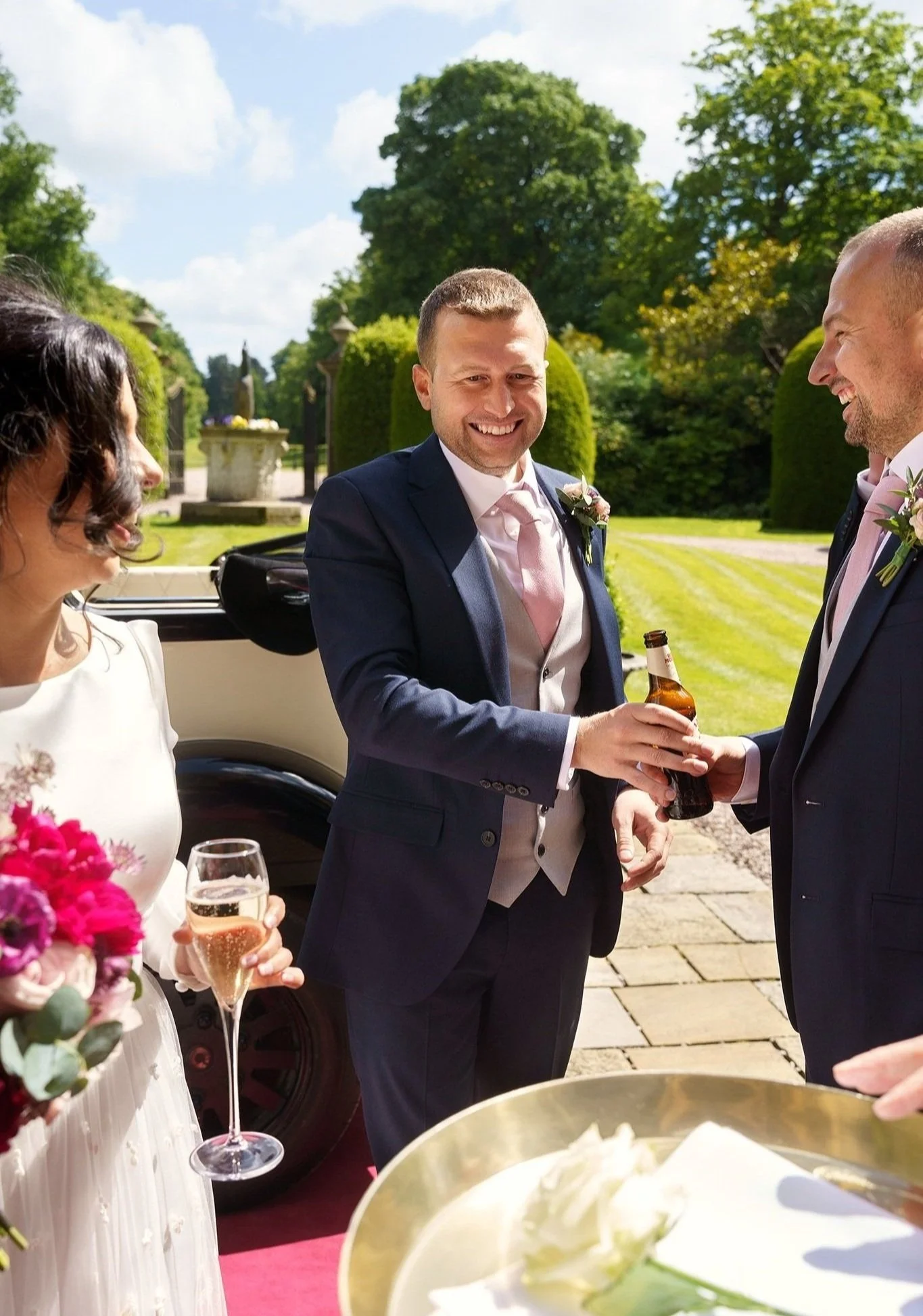A short drive in a classic 1920’s style vintage Cowley wedding car took the newlywed couple to their reception at gorgeous Grade-II listed Georgian house Soughton Hall. where guests were waiting in the gardens to welcome the happy couple. After enjoying canapes and drinks in the sunshine in the venue’s beautiful grounds, Sean and Vanessa made their entrance to the wedding breakfast in the Garden Room, where Vanessa’s touching speech brought tears to a few eyes.