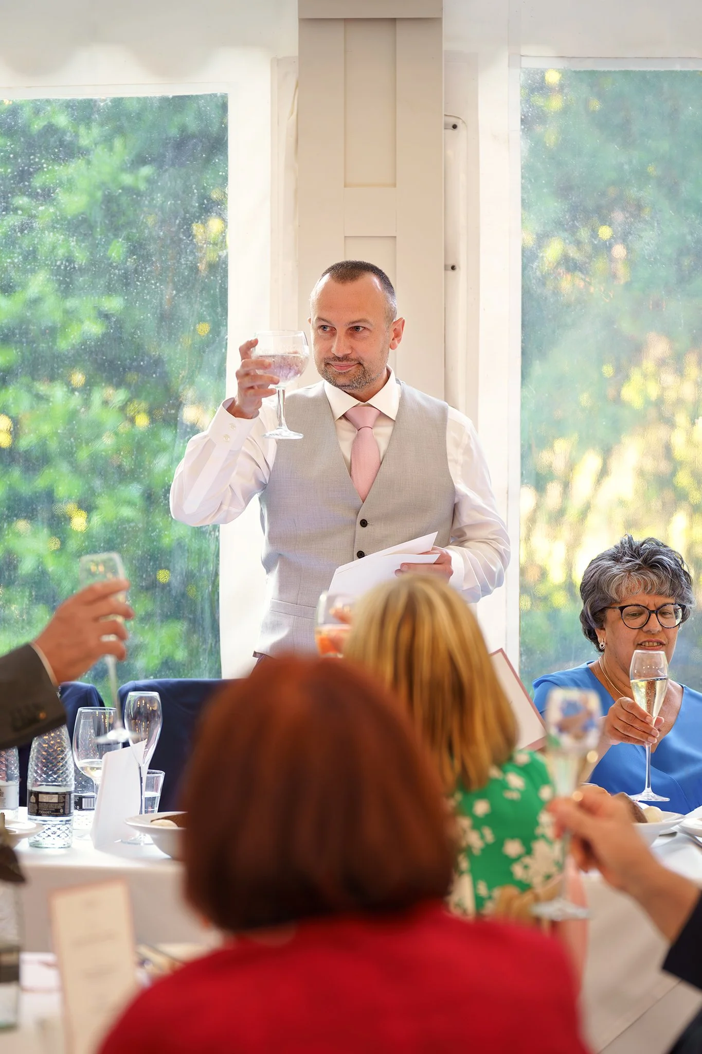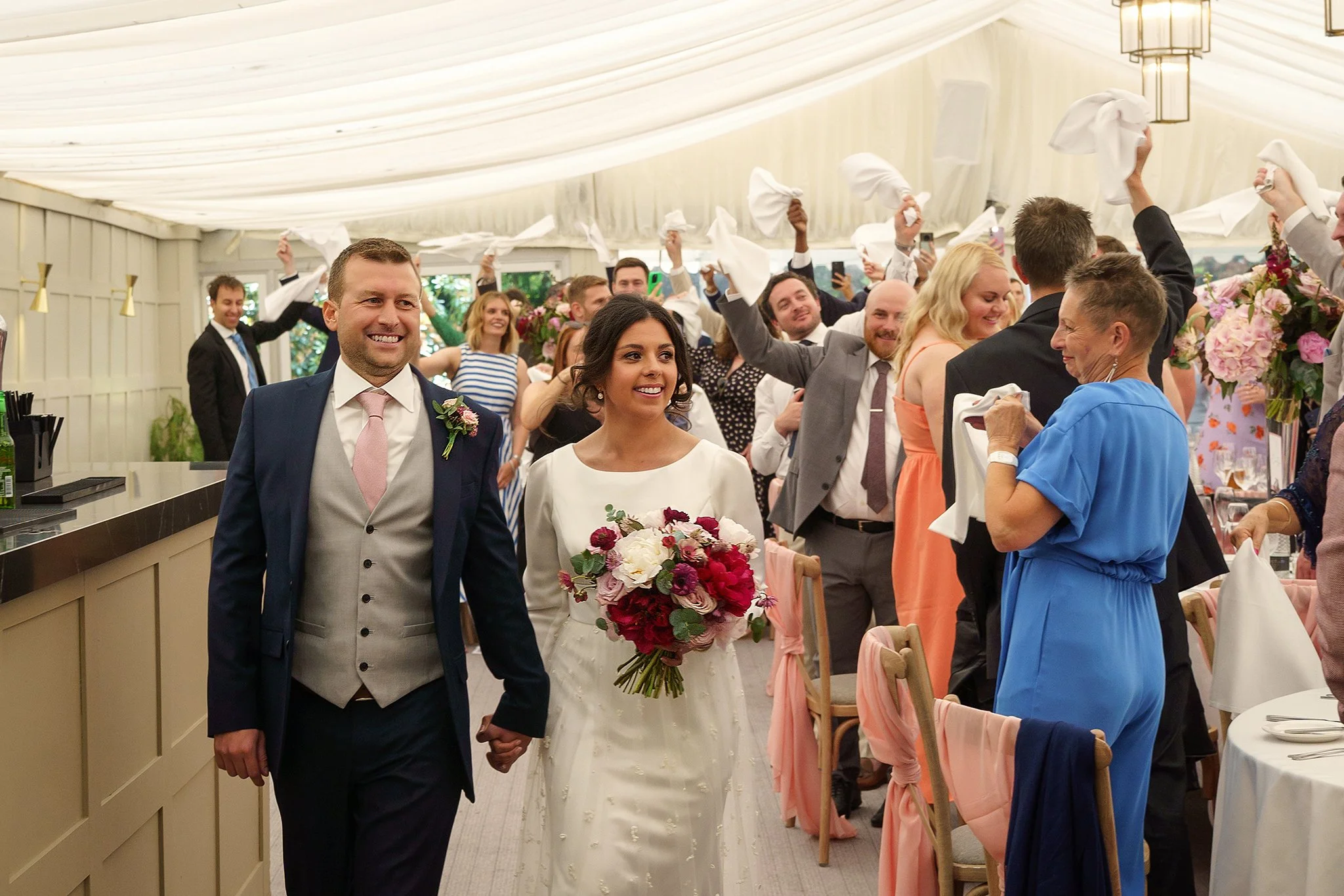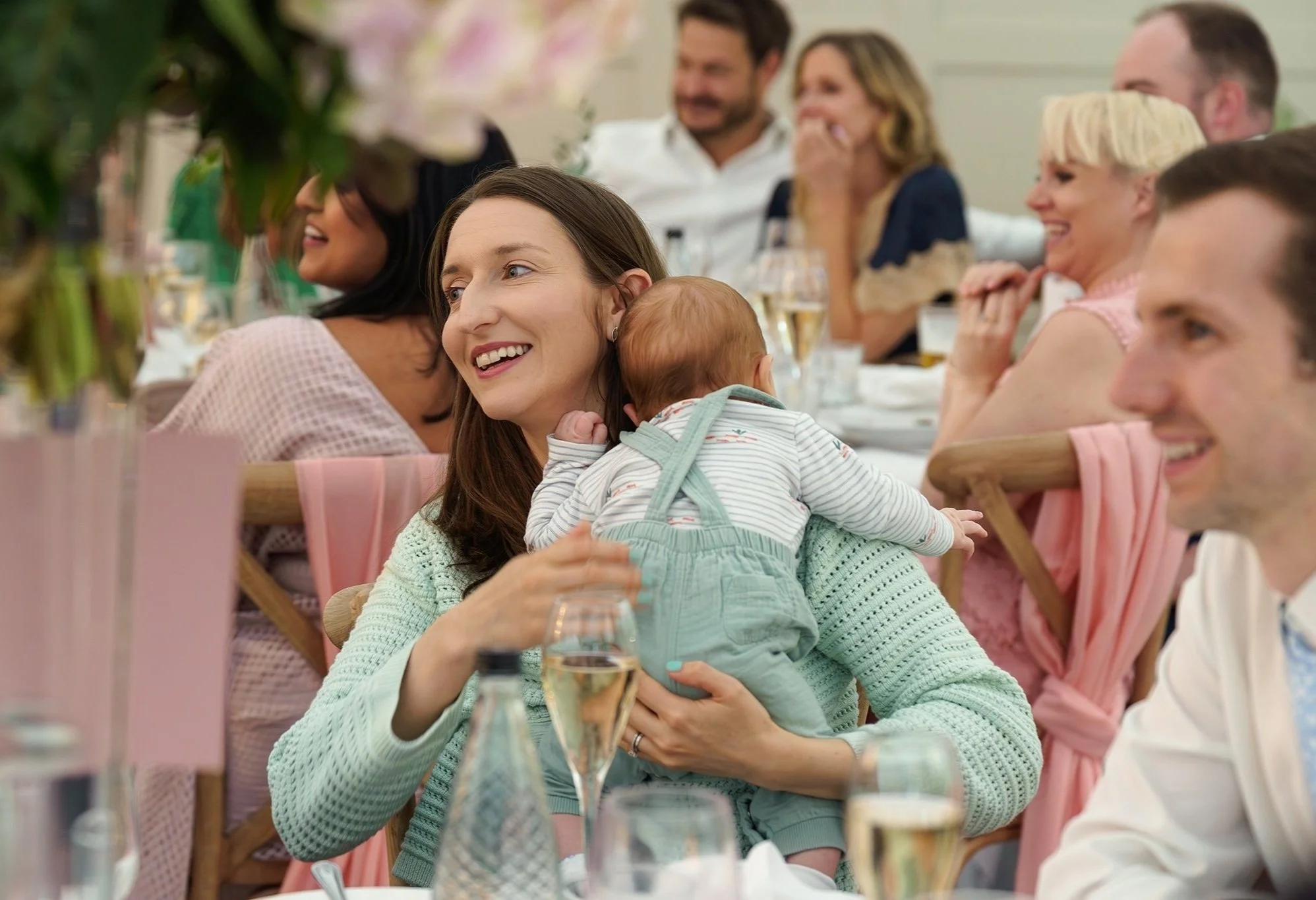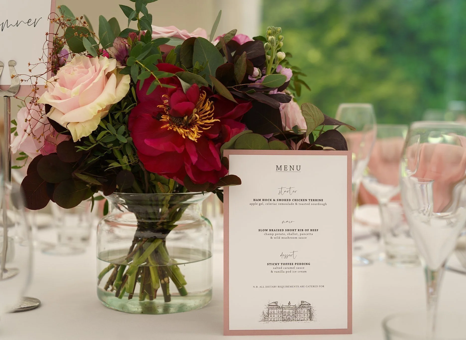 A short drive in a classic 1920’s style vintage Cowley wedding car took the newlywed couple to their reception at gorgeous Grade-II listed Georgian house Soughton Hall. where guests were waiting in the gardens to welcome the happy couple. After enjoying canapes and drinks in the sunshine in the venue’s beautiful grounds, Sean and Vanessa made their entrance to the wedding breakfast in the Garden Room, where Vanessa’s touching speech brought tears to a few eyes.