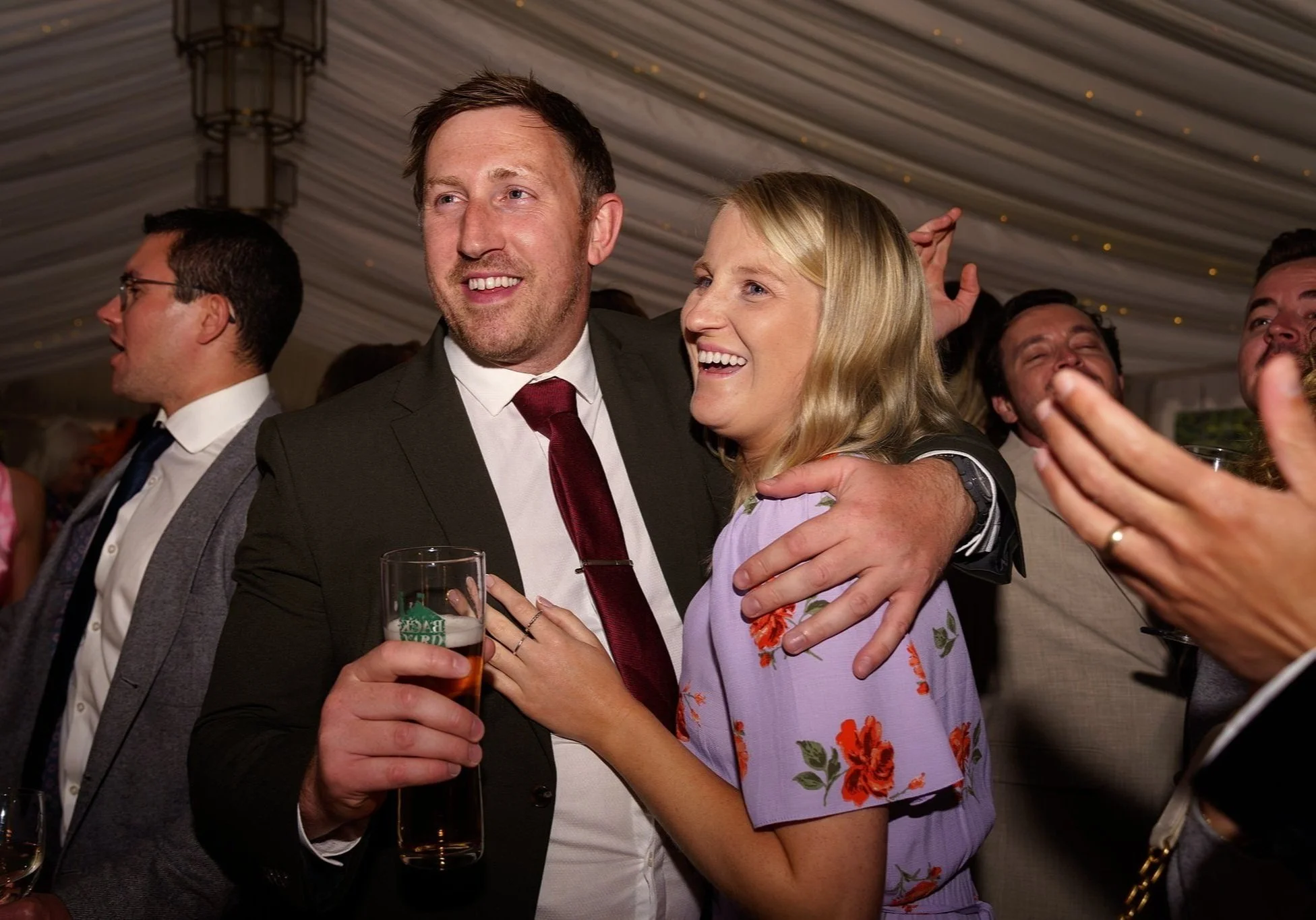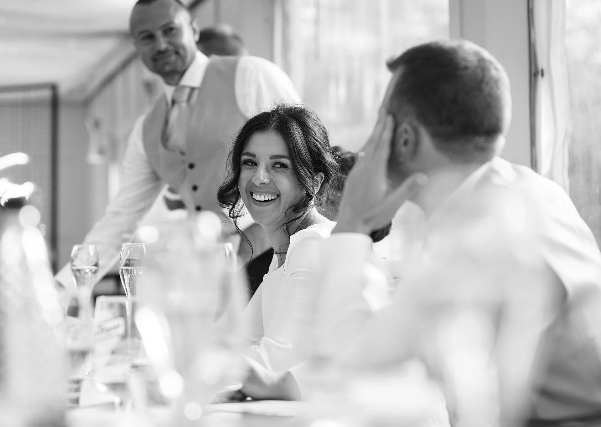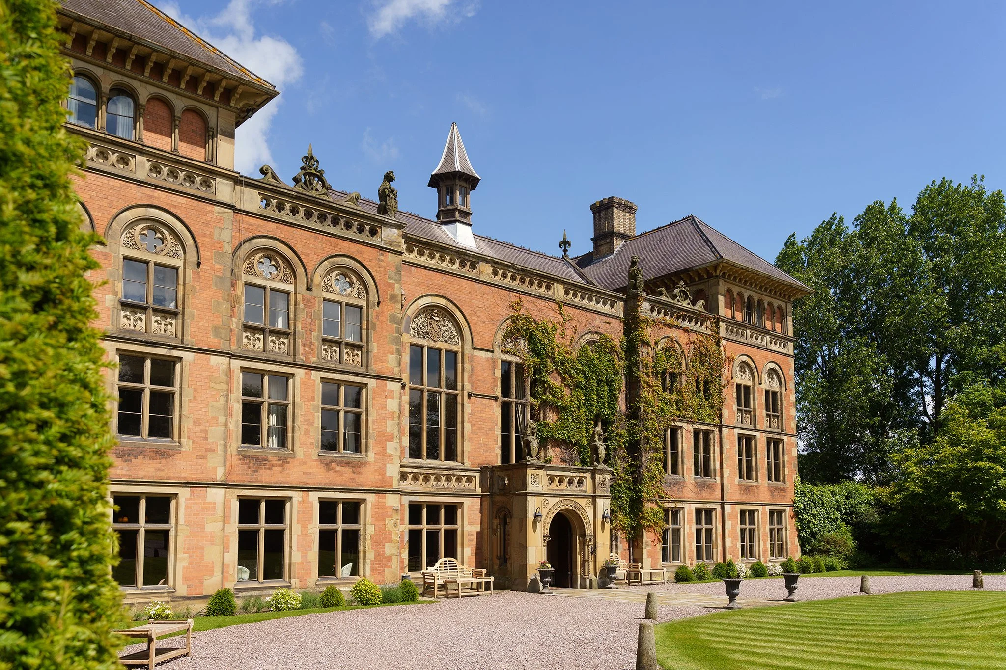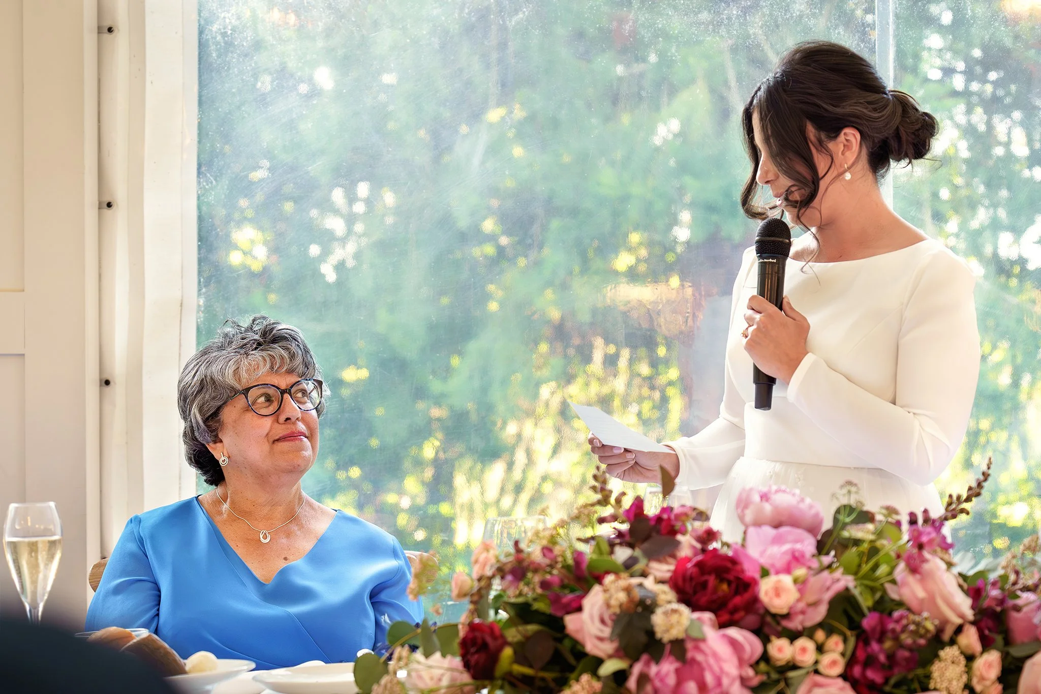 A short drive in a classic 1920’s style vintage Cowley wedding car took the newlywed couple to their reception at gorgeous Grade-II listed Georgian house Soughton Hall. where guests were waiting in the gardens to welcome the happy couple. After enjoying canapes and drinks in the sunshine in the venue’s beautiful grounds, Sean and Vanessa made their entrance to the wedding breakfast in the Garden Room, where Vanessa’s touching speech brought tears to a few eyes.
