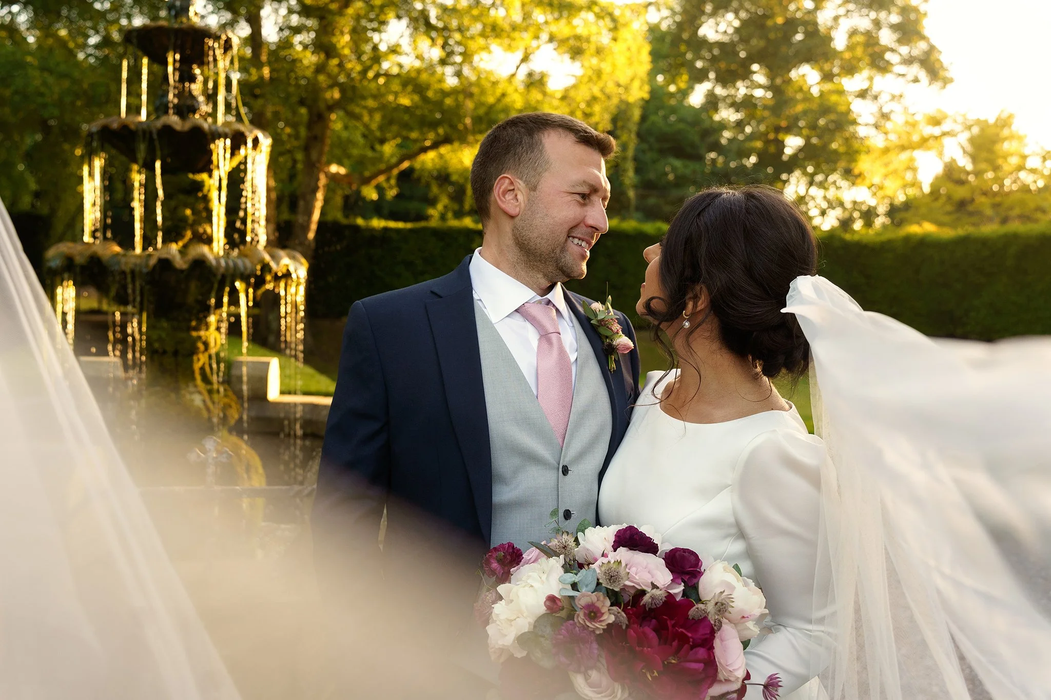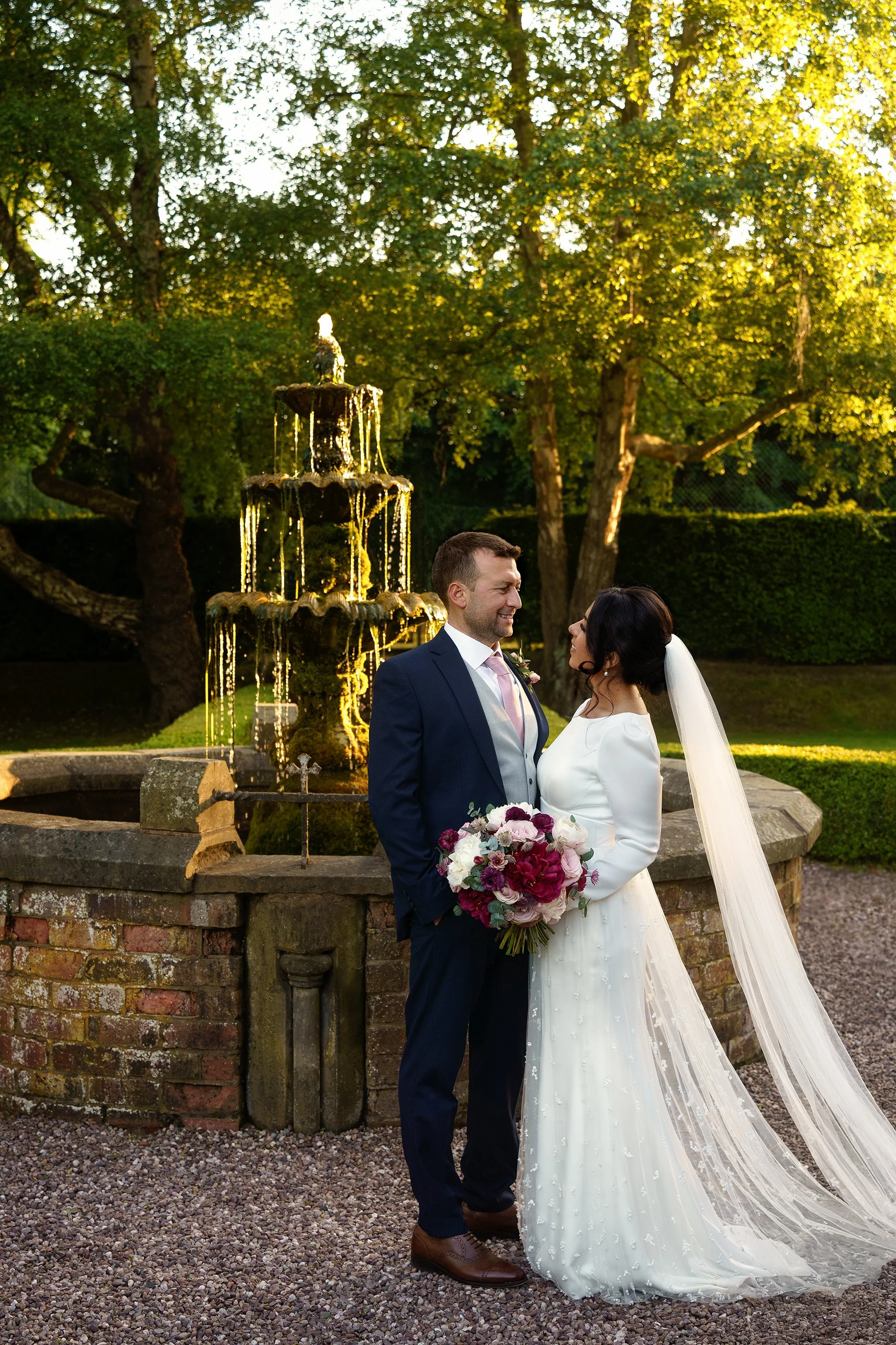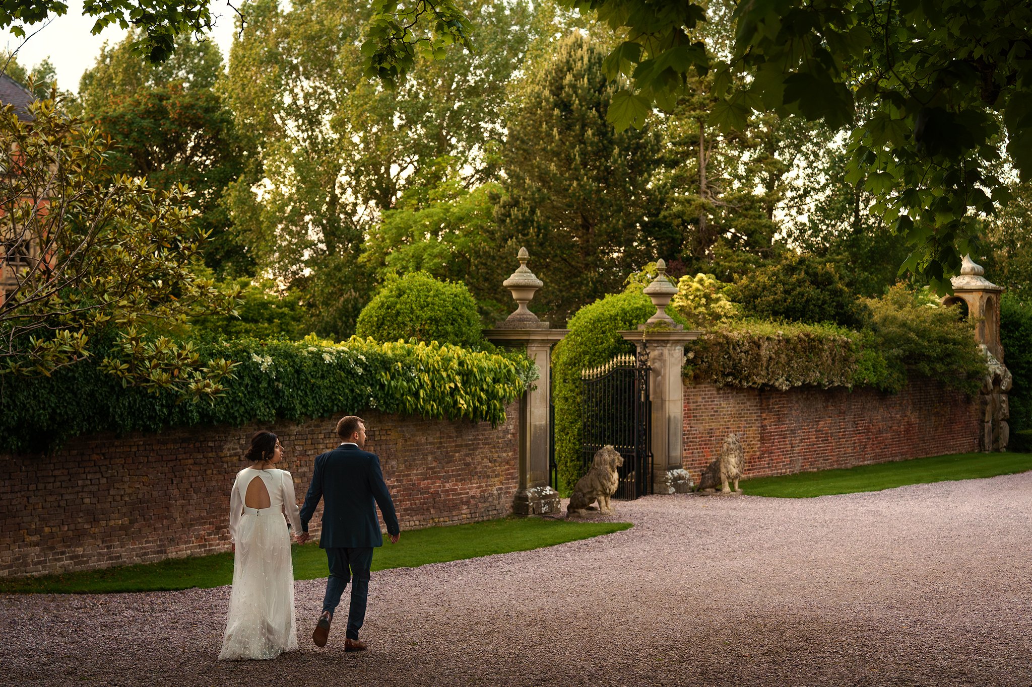 The couple were treated to stunning golden-hour light after their meal, where the fountain and hedges of the Secret Garden provided the perfect secluded spot for some romantic couples portraits. After some dancing back in the Garden Room, Sean and Vanessa stole away for a quick walk in the twilight, and a stop by the Coach House to take a few photos underneath the festoon lights. A wonderful day to be a part of from start to end!