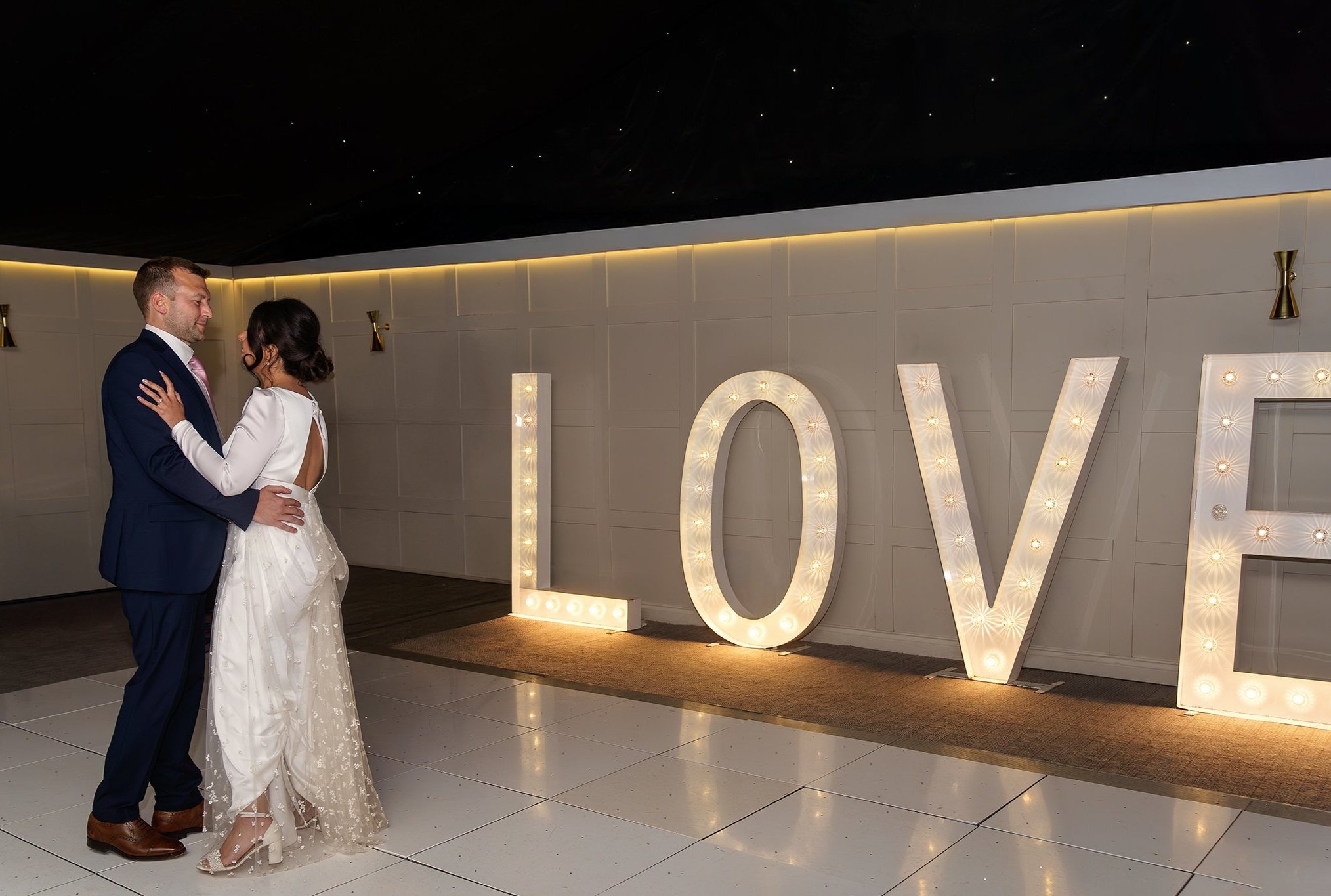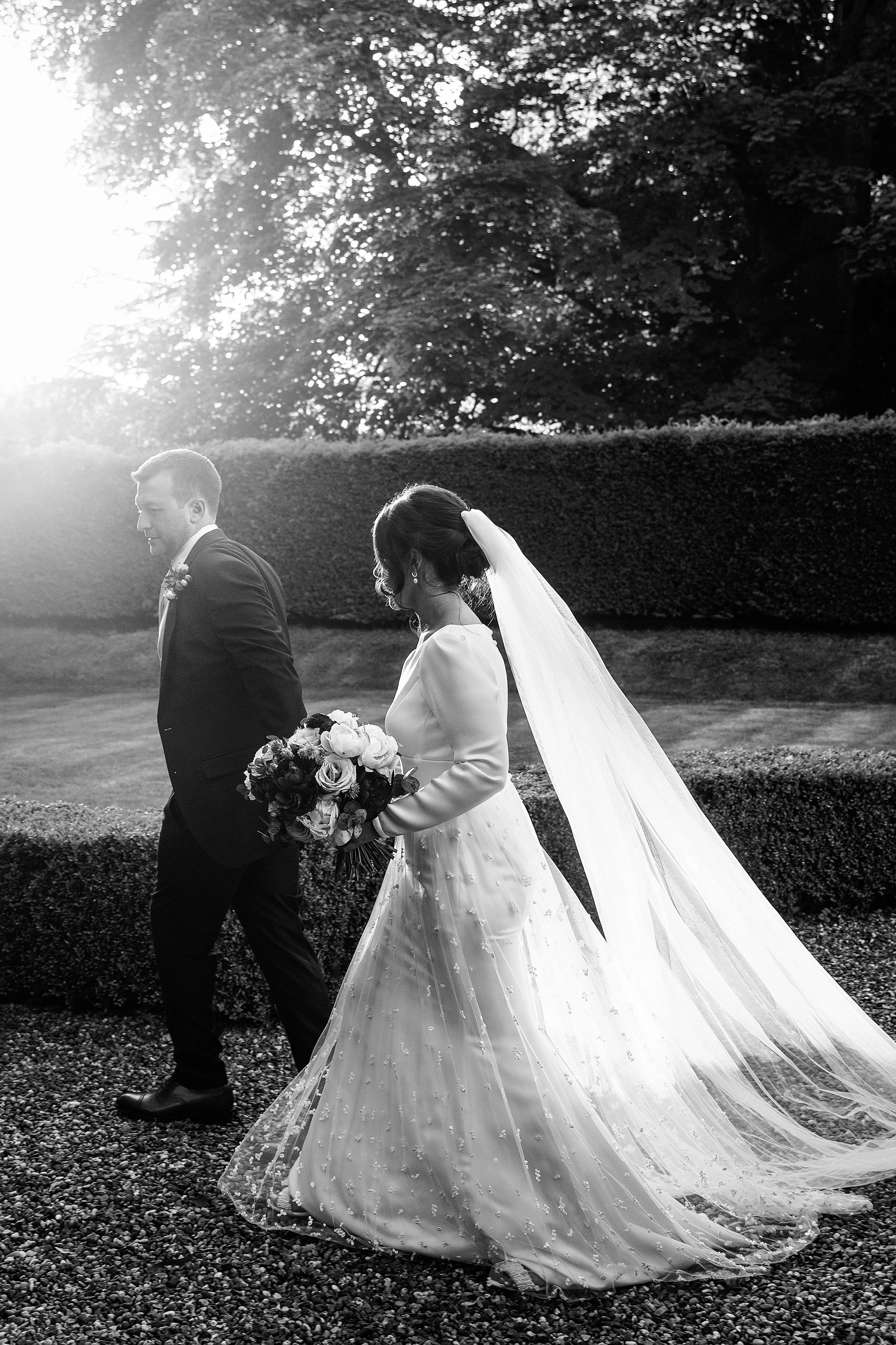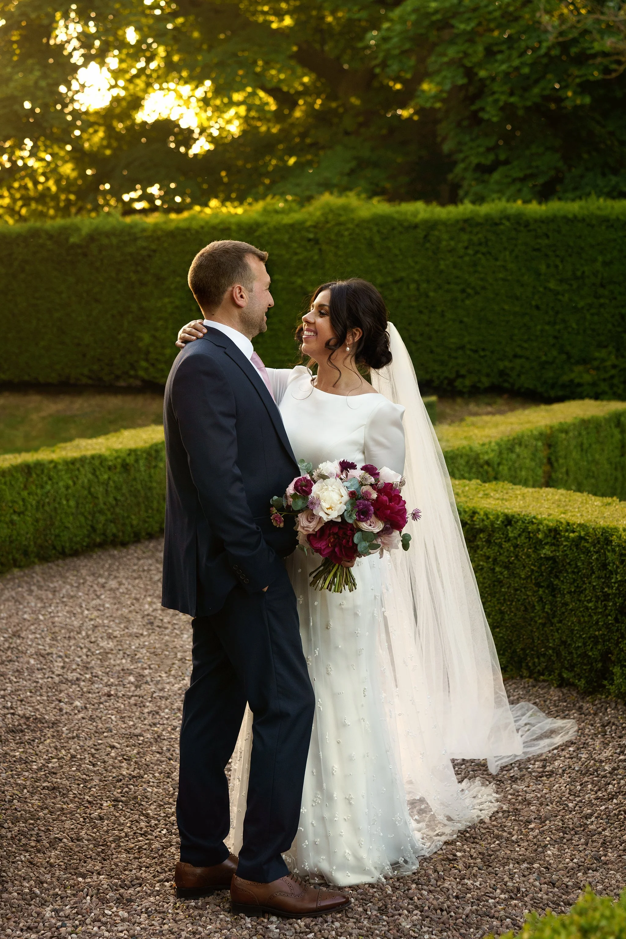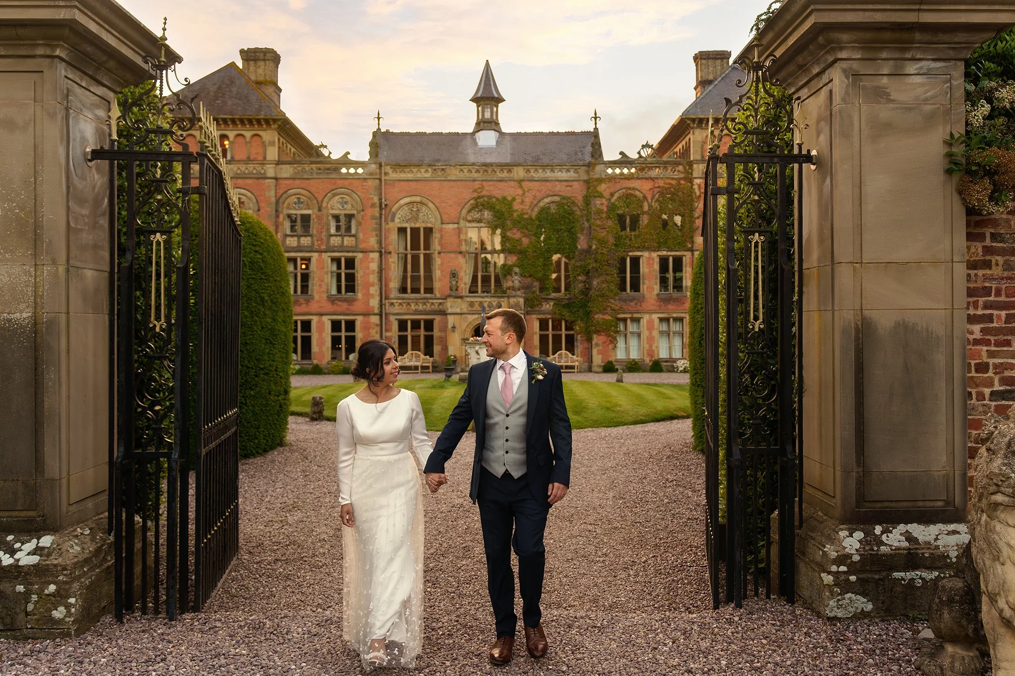 The couple were treated to stunning golden-hour light after their meal, where the fountain and hedges of the Secret Garden provided the perfect secluded spot for some romantic couples portraits. After some dancing back in the Garden Room, Sean and Vanessa stole away for a quick walk in the twilight, and a stop by the Coach House to take a few photos underneath the festoon lights. A wonderful day to be a part of from start to end!